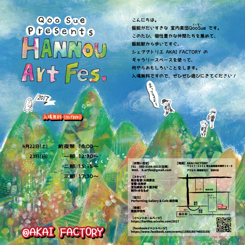 飯能にご縁のある、いつもお世話になっているPerforming Gallery & Cafe 絵空箱のオーナー・たすくさんをも巻き込み巻き込み、多量のご助言と叱咤激励を受けて、色々と模索しながら動いております4月の一大イベント。