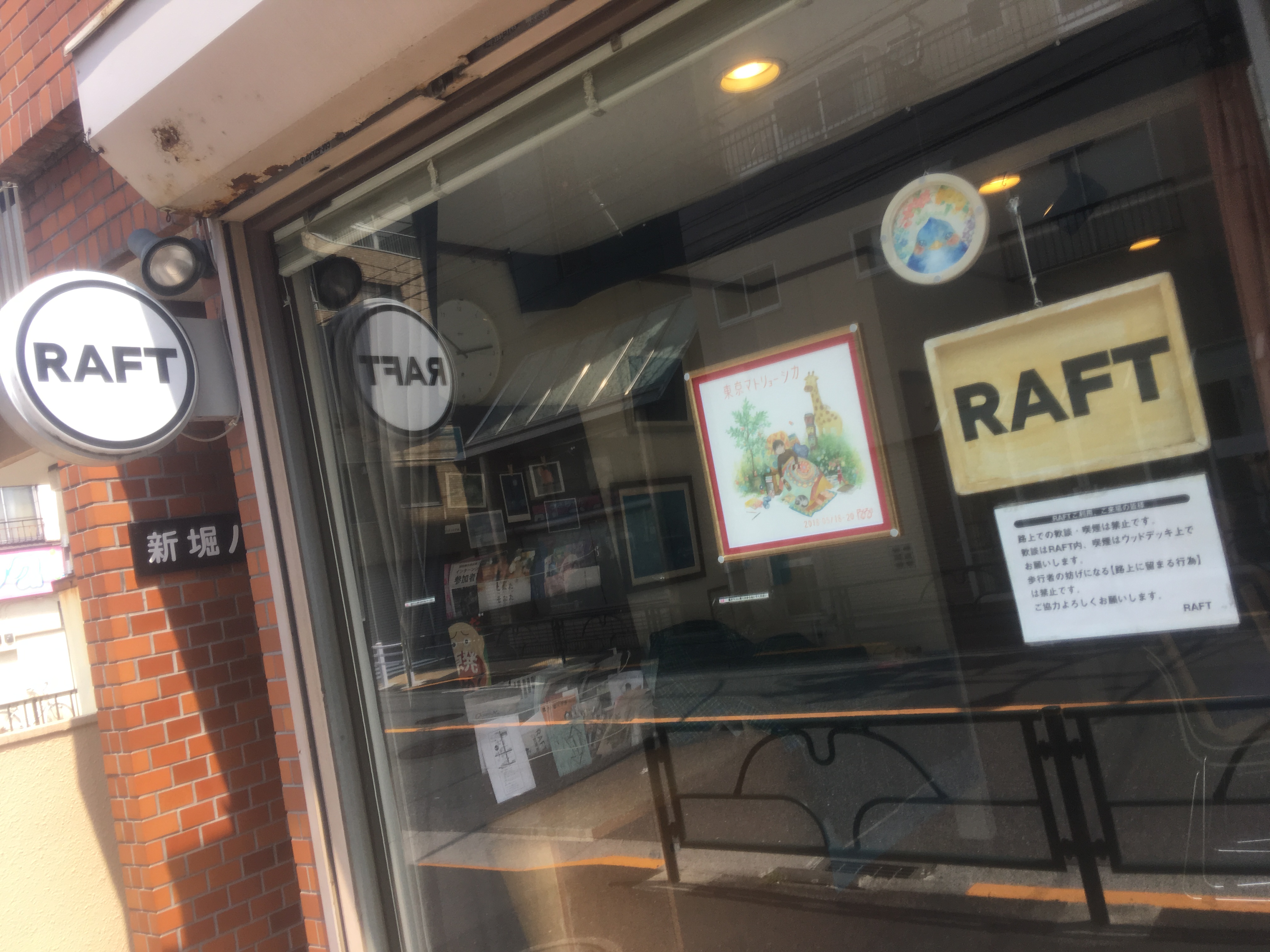 ③また5分程歩くと、右手側に『RAFT』と書かれた丸い看板があります。