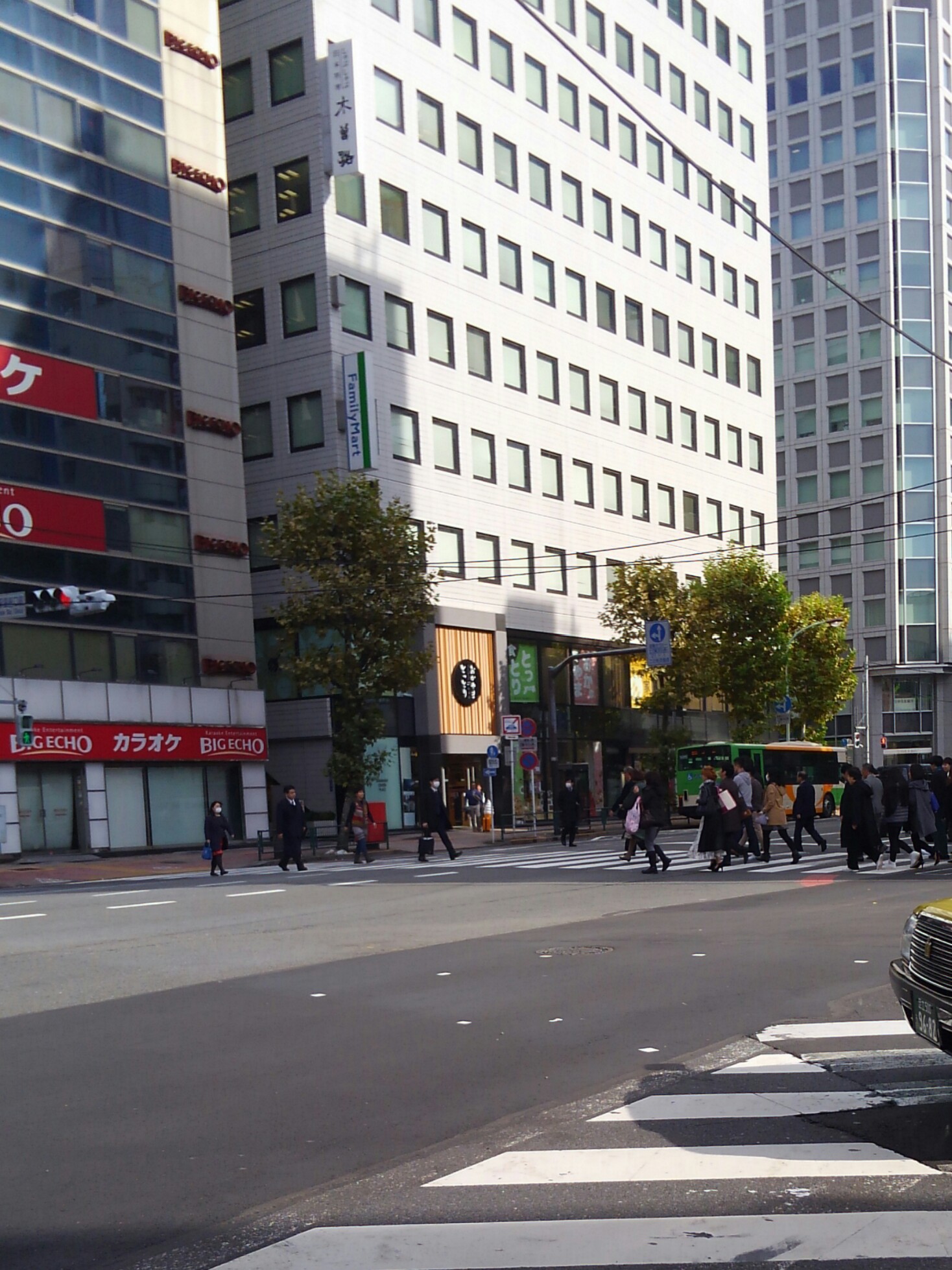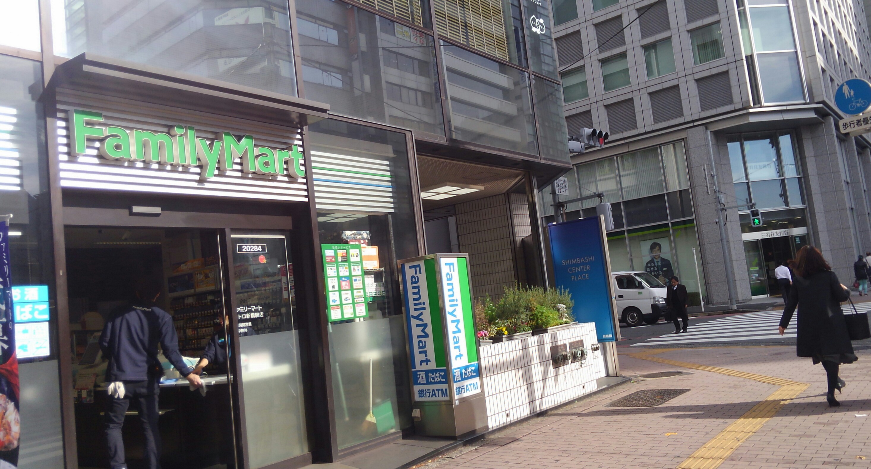 ①JR山手線 新橋駅銀座口を出て、ビックエコーの方へ渡り、ファミマの方へ進む。