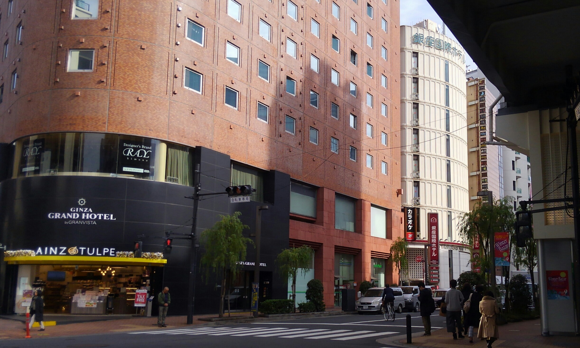 ⑤少しすると銀座国際ホテルがあるので、その前の道を左へ。
