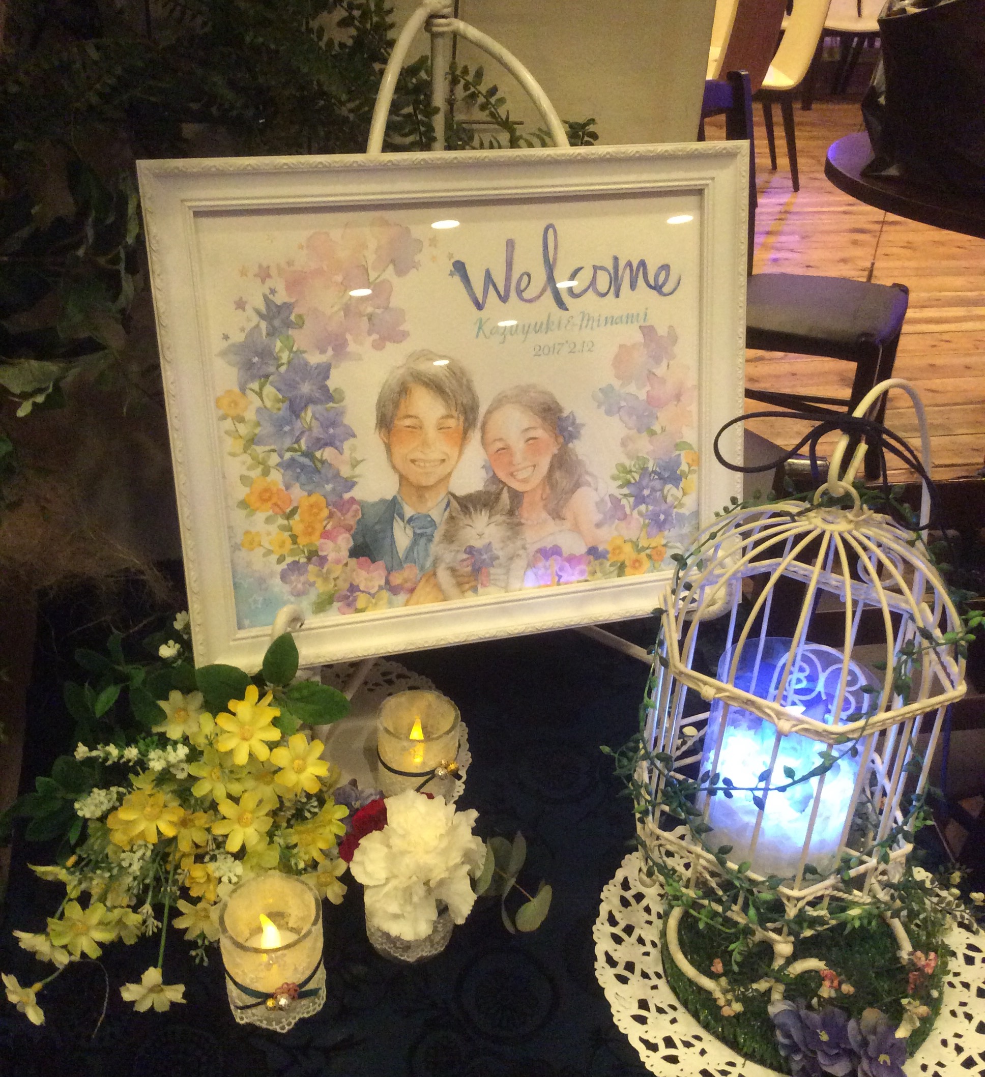 ※鳥籠のライトは挙式でも使われた、舞台監督である新郎の手造り