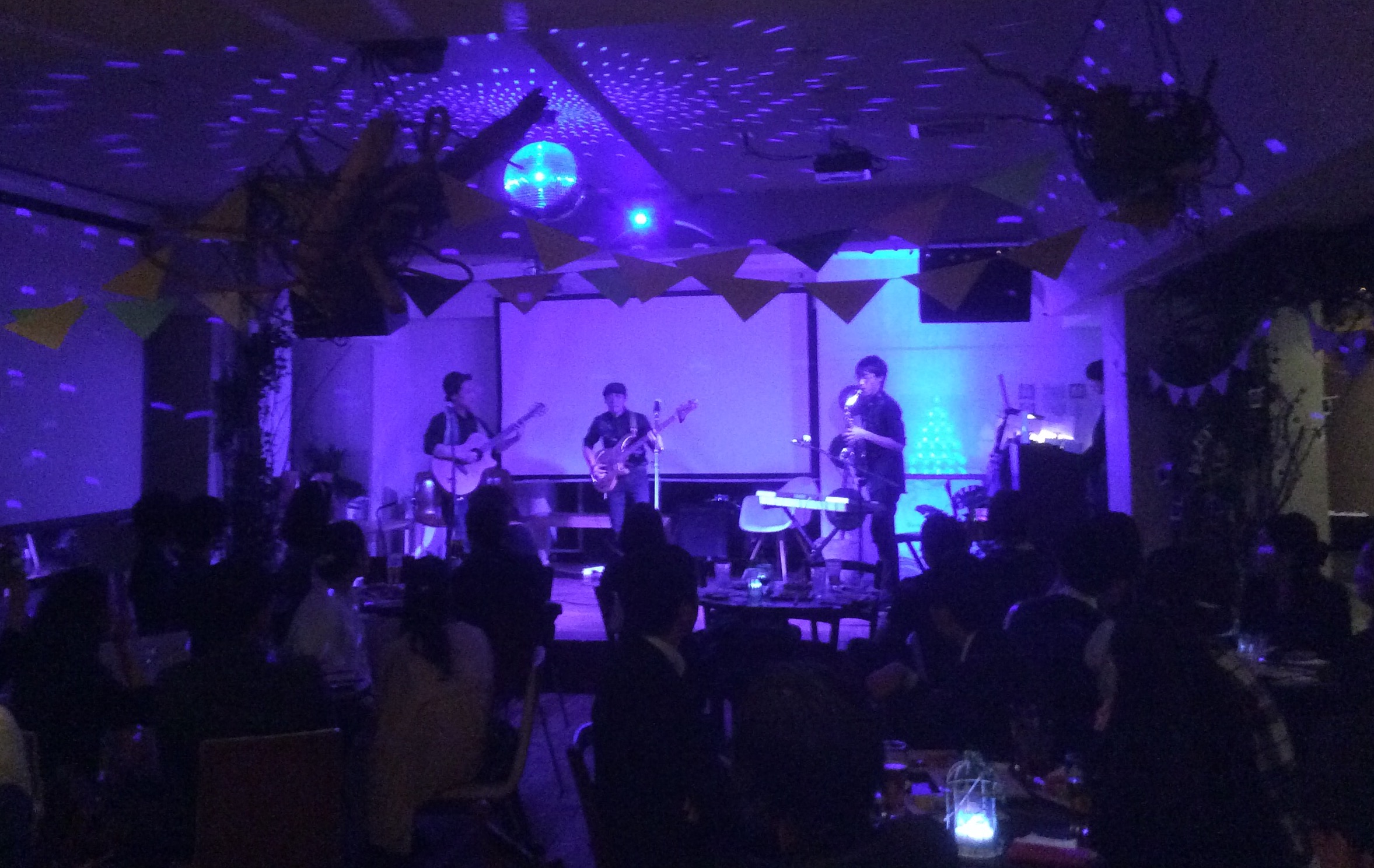 お世話になっている舞台監督さんの結婚お披露目会で、五十嵐が場内装飾、吉岡が音響についたり、