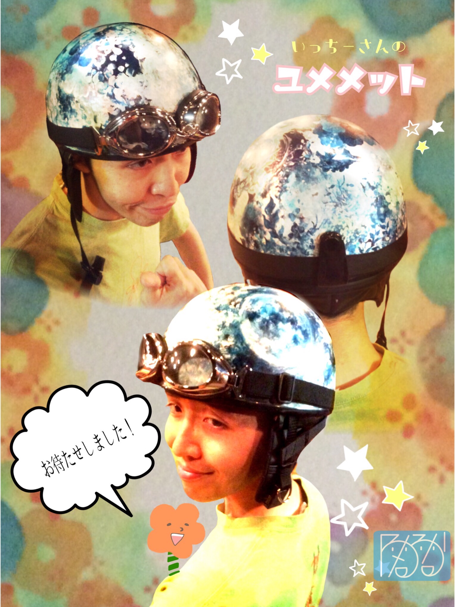 ご出演の市森さんへ、ペイントを施したヘルメットのお渡しをようやっと終えました。