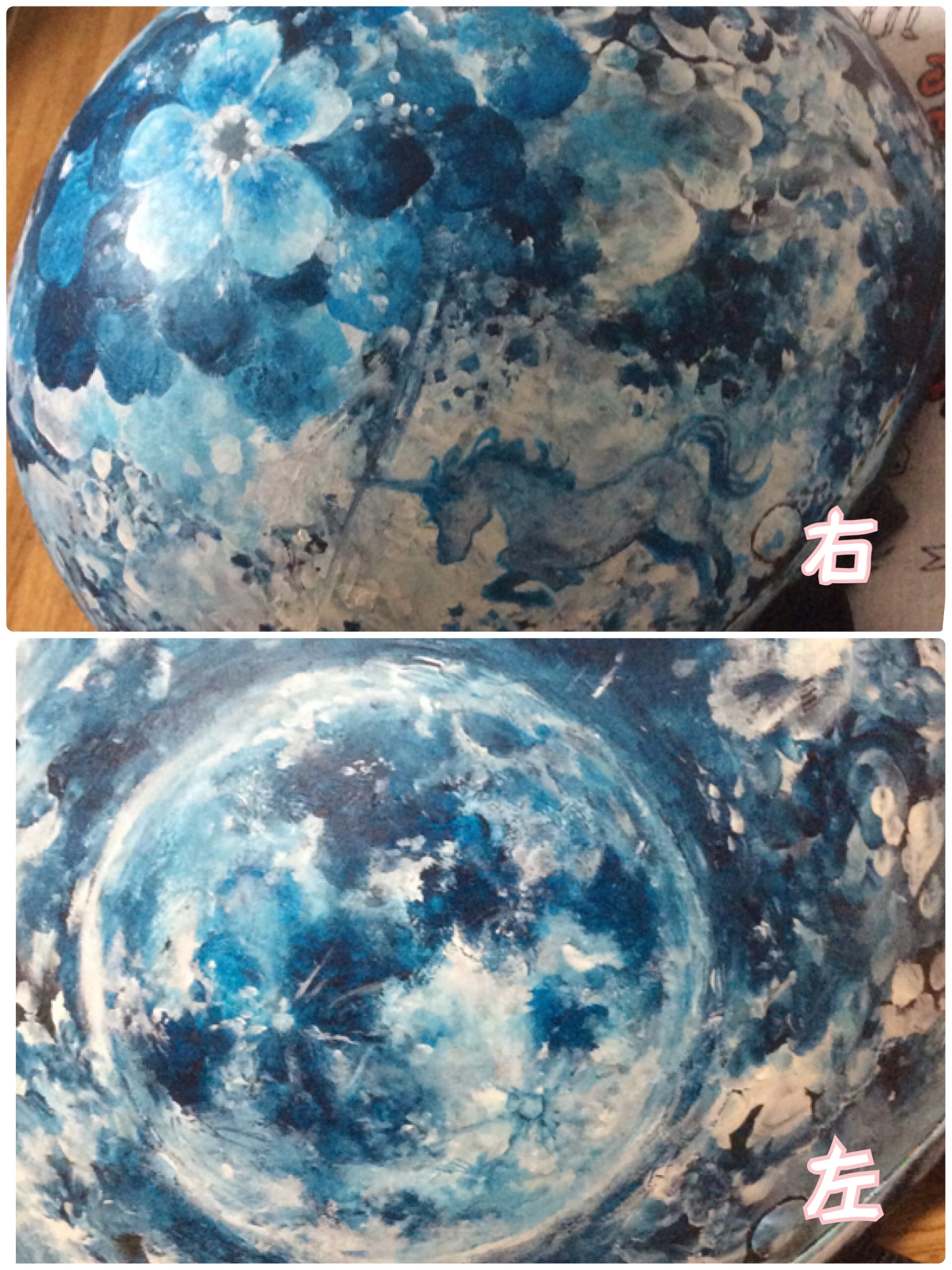 左側面には月が、後ろには魚が泳いで、右側面にユニコーン、頭部にはお花が咲いたので、