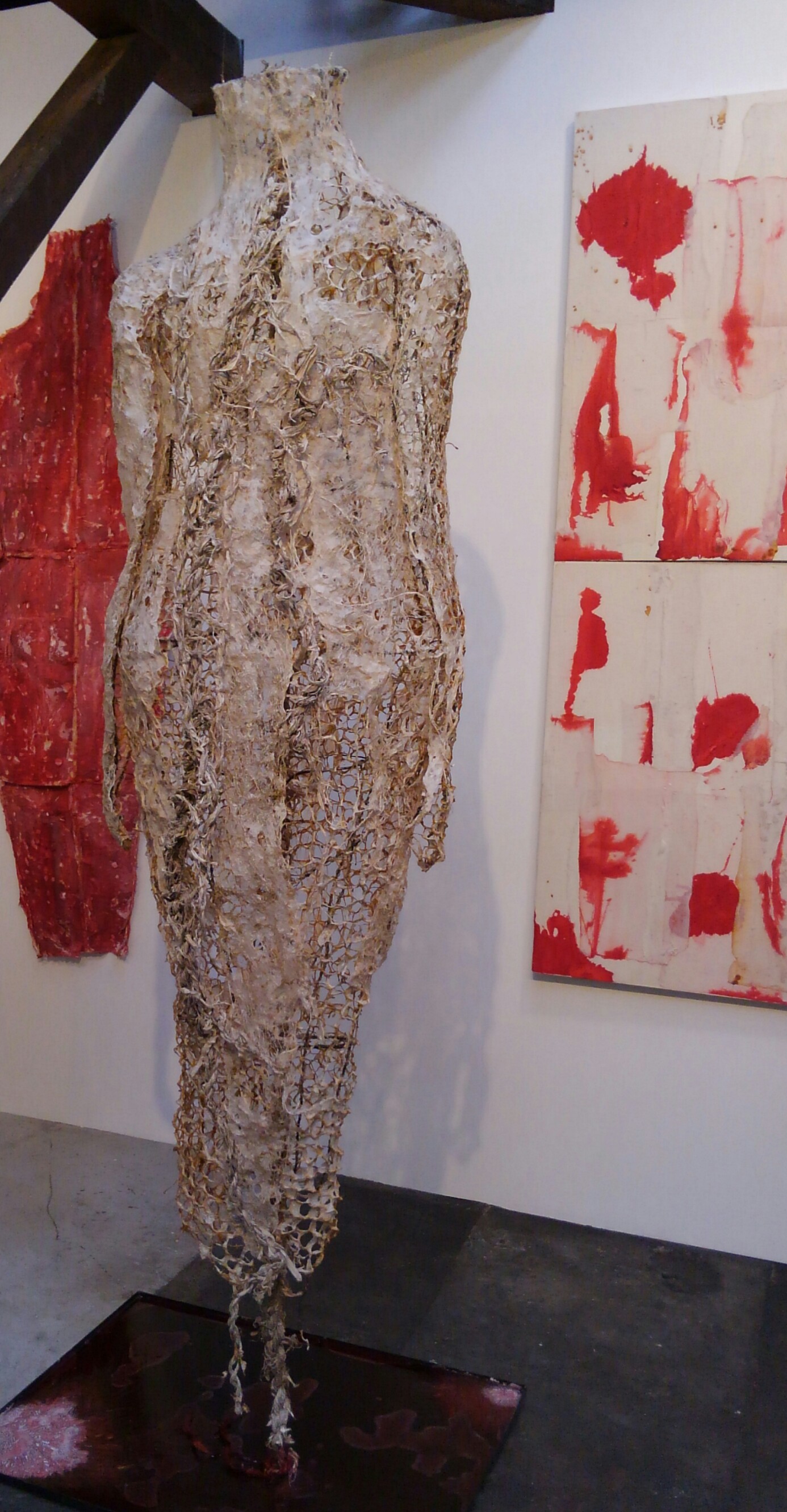 この日は、工房内の真ん中に設えられたギャラリースペースで、和紙作家の加茂さんの展示会が行われていました。