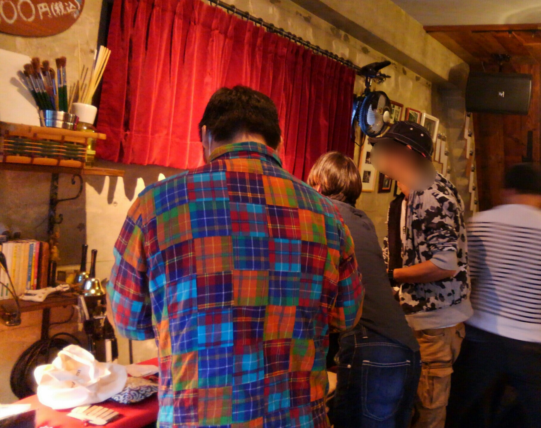 初日には、デザインフェスタで出会った日本画の藏先生とイガラシの幼馴染みの方がお花を持って駆けつけて下さいました。