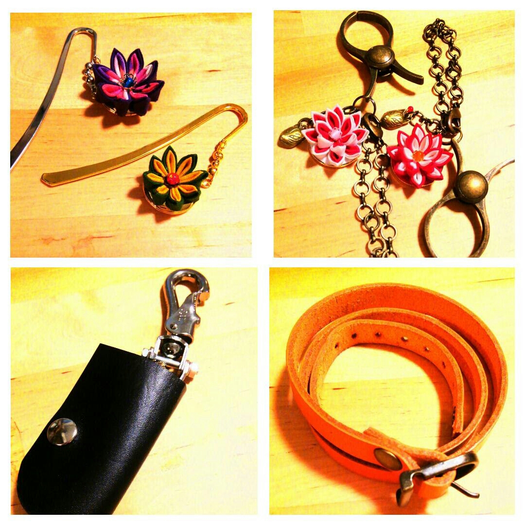 物販はポストカードの他に、ヨシオカお手製のつまみ細工、そして私、ゆるいが手掛けました革細工もございます。