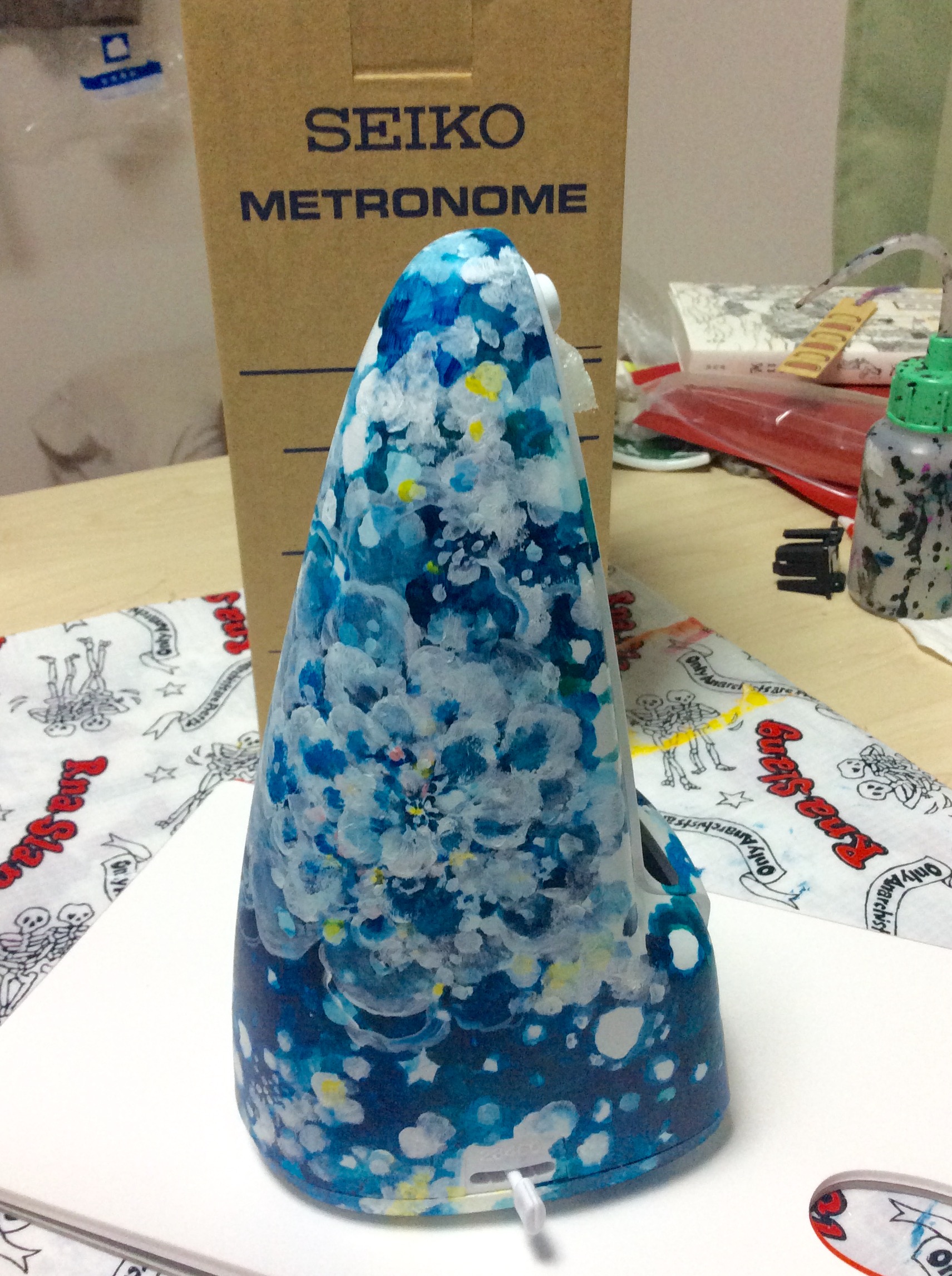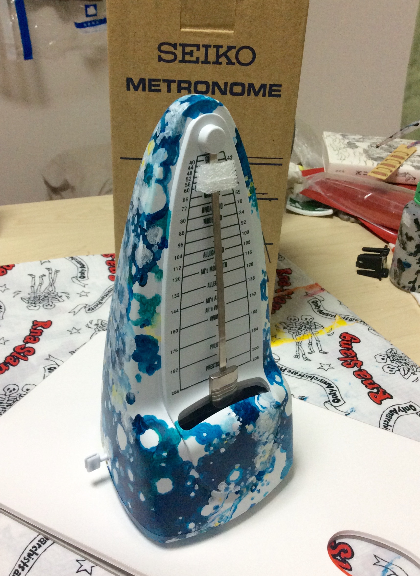 先日QooSue那須兄からのご依頼で、sax.keyの桂樹へのサプライズ誕プレ、メトロノームにペイントさしてもろいましたー。