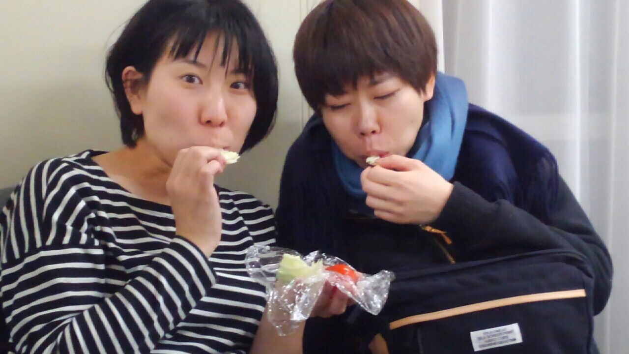 夜の稽古が始まる前に、ソファでくつろいでいると、ヒロシマさんがおもむろにサランラップに包まれたミニトマトと生キャベツを食べ始め、腹を空かせたイガラシにもわけて下さいました。