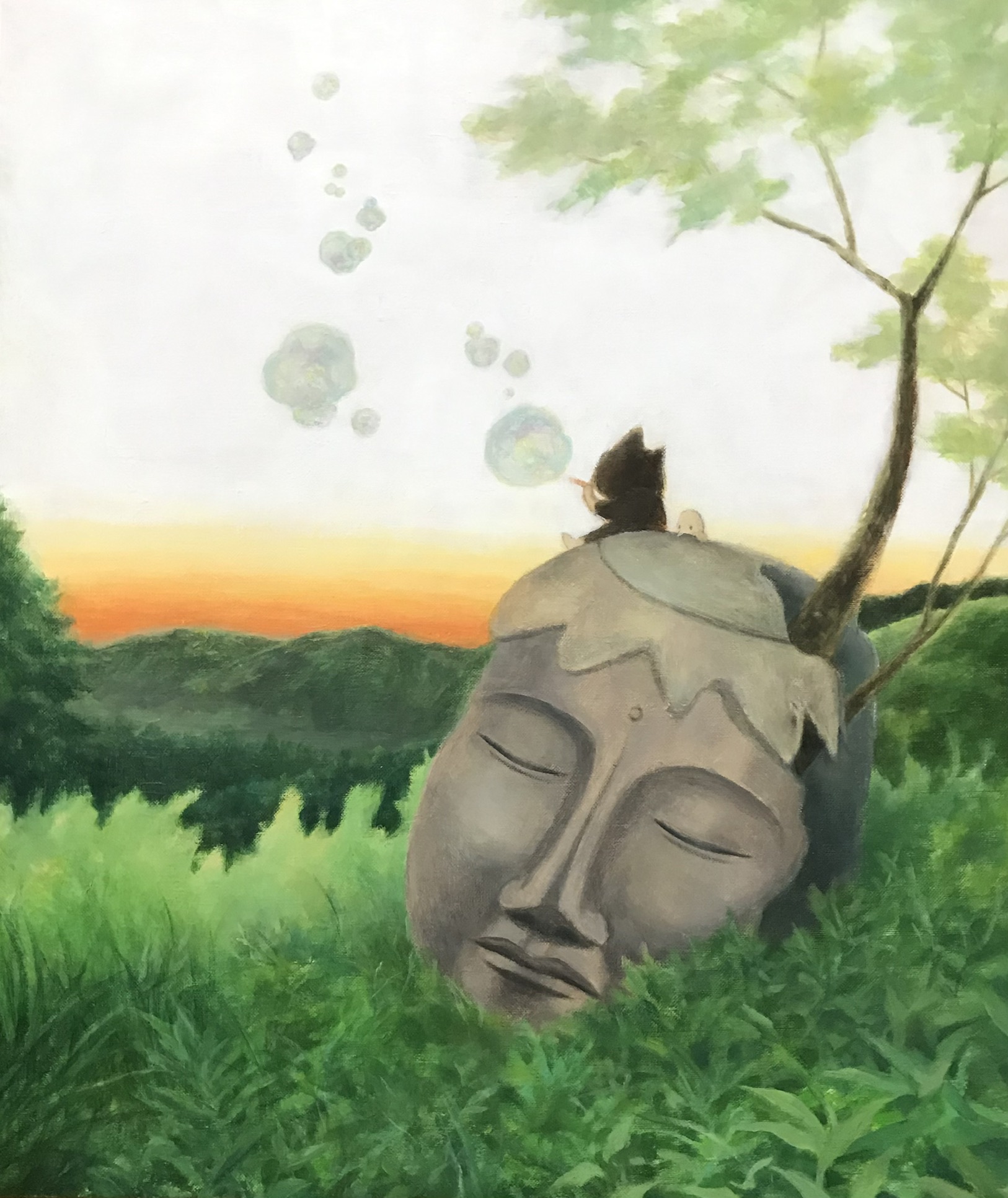 もう一作は今年1月の個展で一度は世に出ましたが、時が経ちそのままにしておけないと思ったようで、だいぶ加筆された「見晴らしのいい丘」。